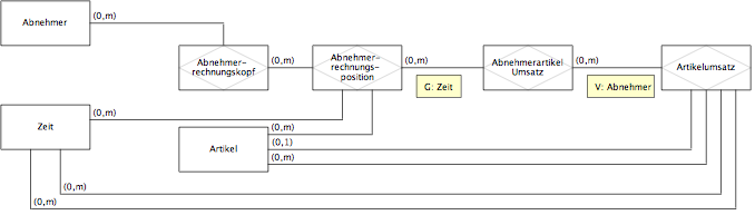 Typ: ER-Typ abhängiger datenobjekttyp: Artikelumsatz, Abnehmerrechnungseinzelpositionshierarchie, Rechnung mit Lieferschein-Bezug, Abnehmerrechnungseinzelpositionshierarchie, Abnehmerartikel Umsatz, Abnehmer Umsatz, Buchung Sachkonten Abnehmer, Buchung debitäre OP generalisierungsknoten: Abnehmerrechnungsposition unabhängiger datenobjekttyp: Abnehmerrechnungskopf, Vertriebsartikelumsatz, Artikel, Artikel, Abnehmerrechnungskopf, Artikel, Abnemerrechnungskopf Einzel, Zeit