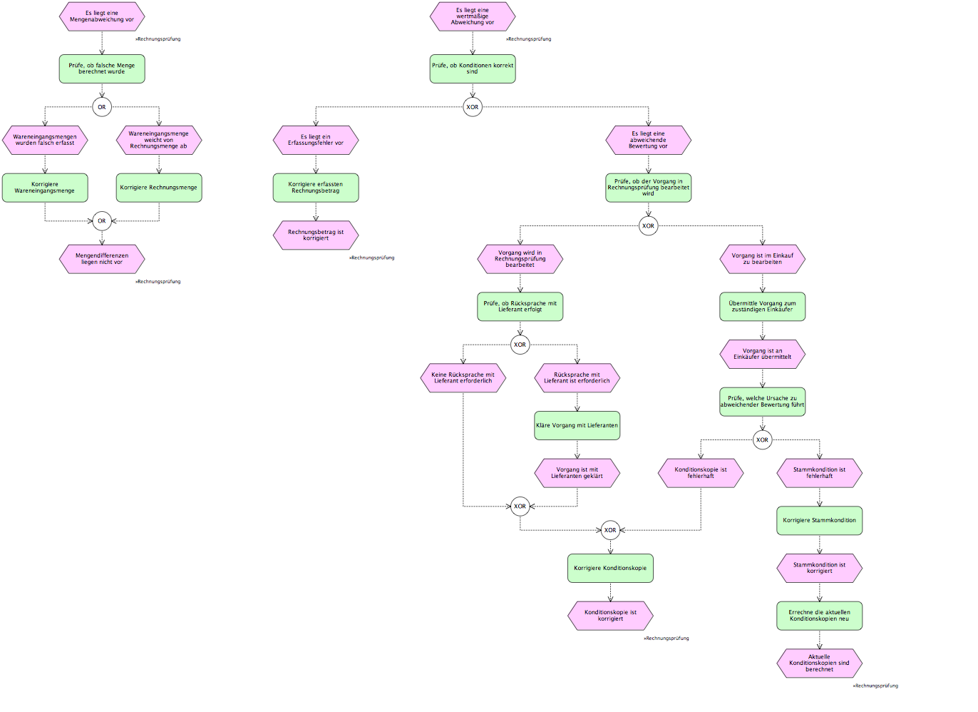 gesendeter fluss: Prüfe, ob Konditionen korrekt sind -> Es liegt eine abweichende Bewertung vor, Prüfe, ob Konditionen korrekt sind -> Es liegt ein Erfassungsfehler vor