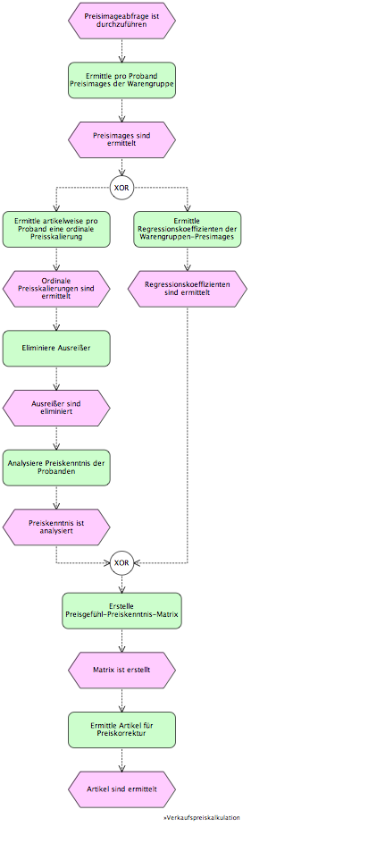 gesendeter fluss: Preisimages sind ermittelt -> Ermittle Regressionskoeffizienten der Warengruppen-Presimages, Preisimages sind ermittelt -> Ermittle artikelweise pro Proband eine ordinale Preisskalierung